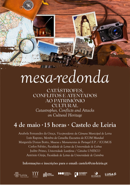 No dia 4 de maio, às 15:00h, no Castelo de Leiria por conta da exposição “Mostrar para não deixar esquecer”, teremos a oportunidade de refletir e dialogar sobre os patrimónios culturais em contextos de catástrofes, conflitos armados e atentados.